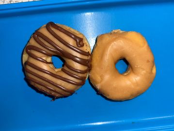 Peanut Butter (With & Without Chocolate Drizzle) – Creamy peanut butter glaze, with or without a rich chocolate drizzle.