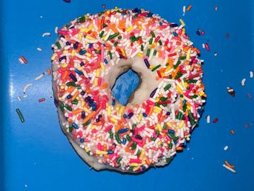 Vanilla with Sprinkles – Smooth vanilla frosted donut covered in bright, soft sprinkles—classic and colorful.