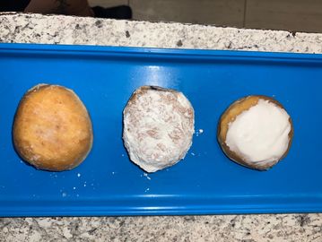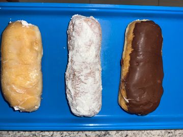 Long Johns (Vanilla Cream) – Filled with home made smooth vanilla cream and topped with your choice of chocolate, powdered sugar, or glaze.
